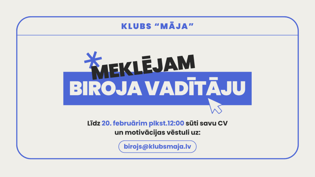 AICINĀM PIEVIENOTIES KOMANDĀ BIROJA VADĪTĀJAM! 🧑🏼💻 Vai lietvedība, finanses un saimniecība tev nav sveši termini? Vai meklē darbu uz pusslodzi, ko vari apvienot ar studijām vai citām nodarbēm? Vai vēlies iesaistīties nevalstiskā sektora un jaunatnes jomas darbā? Tad mēs meklējam tieši tevi! 🫵🏼 GALVENIE PIENĀKUMI Finanšu un projektu koordinēšana Ienākošo rēķinu, čeku un kvīšu apstrāde, sistemātiska ievade un nodošana grāmatvedībai; rēķinu izrakstīšana un maksājumu uzdevumu sagatavošana internetbankā atbilstoši apstiprinātiem rēķiniem un līgumiem; projektu un operatīvā budžeta izpildes uzraudzība sadarbībā ar vadību un projektu vadītājiem; finanšu datu apkopošana un operatīvo atskaišu (piem., naudas plūsmas pārskatu) sagatavošana; finanšu darījumu atbilstības nodrošināšana grantu, ziedojumu un iekšējās kārtības prasībām. Lietvedība un administrēšana Oficiālo dokumentu plūsmas, lietvedības un biroja kārtības nodrošināšana; ienākošās un izejošās korespondences apstrāde un novirzīšana; dokumentu, līgumu un finanšu arhīva uzturēšana atbilstoši normatīvajiem aktiem; kalendāru pārvaldība, sapulču un tikšanos organizēšana, telpu rezervēšana; korespondences sagatavošana pēc parauga, partneru un viesu uzņemšana. Biroja saimniecība un iekšējie procesi Kancelejas, biroja tehnikas un saimniecības preču pasūtīšana un uzskaite; biroja tehnikas darbības uzraudzība un pamatproblēmu risināšana; sadarbība ar apsaimniekotājiem, IT un citiem ārpakalpojumu sniedzējiem; darba vides kārtības un funkcionalitātes nodrošināšana; atbalsts iekšējo pasākumu organizēšanā; dalība iekšējo pārvaldības dokumentu un procesu izstrādē. NEPIECIEŠAMĀS ZINĀŠANAS UN PRASMES Pieredze lietvedības un finanšu procesu koordinēšanā; izpratne par Latvijas NVO sektoru un tā aktuālajiem izaicinājumiem; precizitāte, augsta atbildības sajūta un labas laika plānošanas prasmes; uz sadarbību un rezultātu vērsta personība, spēja būt elastīgam un patstāvīgam; teicamas latviešu un angļu valodas zināšanas; labas MS Office un Google rīku lietošanas prasmes. Pieredze darbā ar jauniešiem vai neformālajā izglītībā tiks uzskatīta kā priekšrocība. ATALGOJUMS UN IEGUVUMI Atalgojums 690 EUR bruto mēnesī par 20 stundām nedēļā (0,5 slodze); darba līgums līdz 2026. gada 31. decembrim (ar iespēju pagarināt); moderna darba vide Vecrīgā un draudzīga komanda; nacionālie un starptautiskie komandējumi; apmācības, profesionālās izaugsmes un komandas saliedēšanas pasākumi; iespēja strādāt hibrītrežīmā ar 75% klātienē / 25% attālināti. Priekšroka kandidātam/-ei, kas nepieciešamības gadījumā gatavs/-a palielināt darba slodzi, par to atsevišķi vienojoties. PIETEIKŠANĀS UN ATLASES KĀRTĪBA Līdz 2026. gada 20. februāra plkst. 12:00 uz birojs@klubsmaja.lv lūdzam iesniegt: motivētu pieteikumu (līdz 1 A4) par redzējumu darbam ar jaunatni un NVO sektoru; CV, kas apliecina atbilstību prasībām. Pēc dokumentu iesniegšanas, komisija izskatīs pieteikumus un sazināsies ar kandidātiem aicinot uz otro lases kārtu – klātienes intervija, un praktisks uzdevums lietvedības vai finanšu jomā (līdz 2026. gada 25. februārim, individuāli vienojoties par laiku). Jautājumu gadījumā lūdzam sazināties rakstot uz birojs@klubsmaja.lv