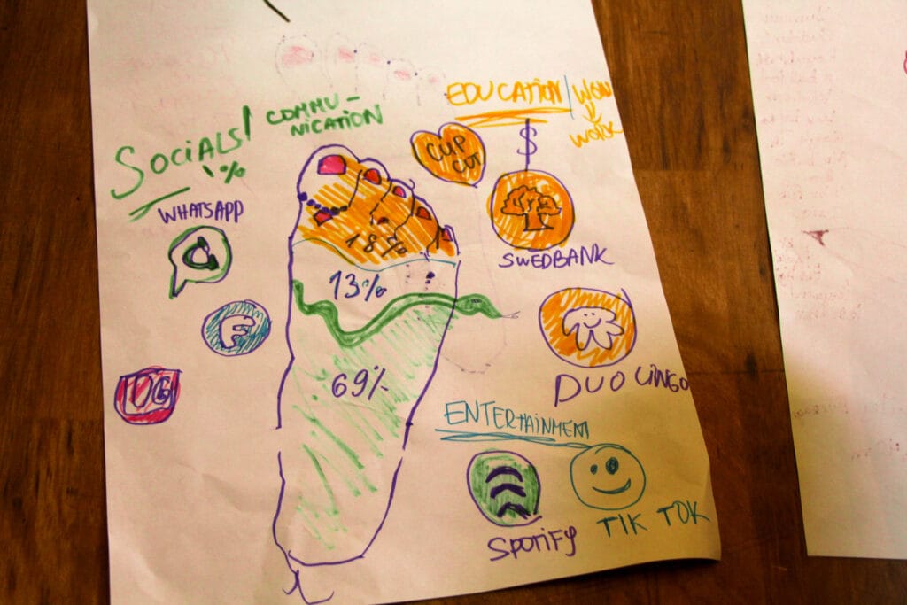 Projekts caurvija divas galvenās kompetentes – es un digitālā pasaule, un mēs kā sabiedrība un digitālā pasaule. Pirmā fāze ietvēra apzināšanos par mūsu katra “digitālo pēdu” – cik daudz patērējam, cik daudz atstājam, un cik daudz no visa tiek aizmirsts. Tāpat caur ķermeni, kustībām un rakstīšanu reflektējām par to kas ir mūsu reālās dzīves persona, un kas – online persona. Otrajā fāzē veidojām diskusijas, pētījām un analizējām reālus piemērus par to kā saņemam informāciju, kā to uztveram un apstrādājam. Iepazināmies ar dažādiem iesaistes līmeņiem digitālajā pasaulē un to kā varam izmantot savu online balsi.
